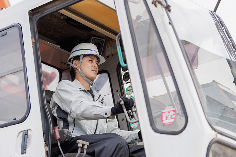 免許も取得し、ガントリークレーン、移動式クレーン等たくさんの重機を操作することもあります。